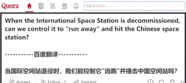 其中一名印度网民就在美版知乎上异想天开表示,等到时候国际空间站退役,能不能直接控制它撞向中国空间站?从而破坏中国的空间站?