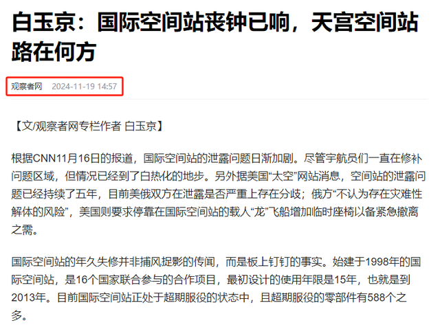为此,很多人也都开始质疑国际空间站老化的说法是传言。